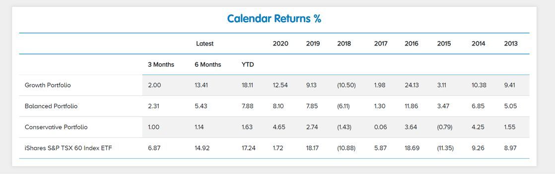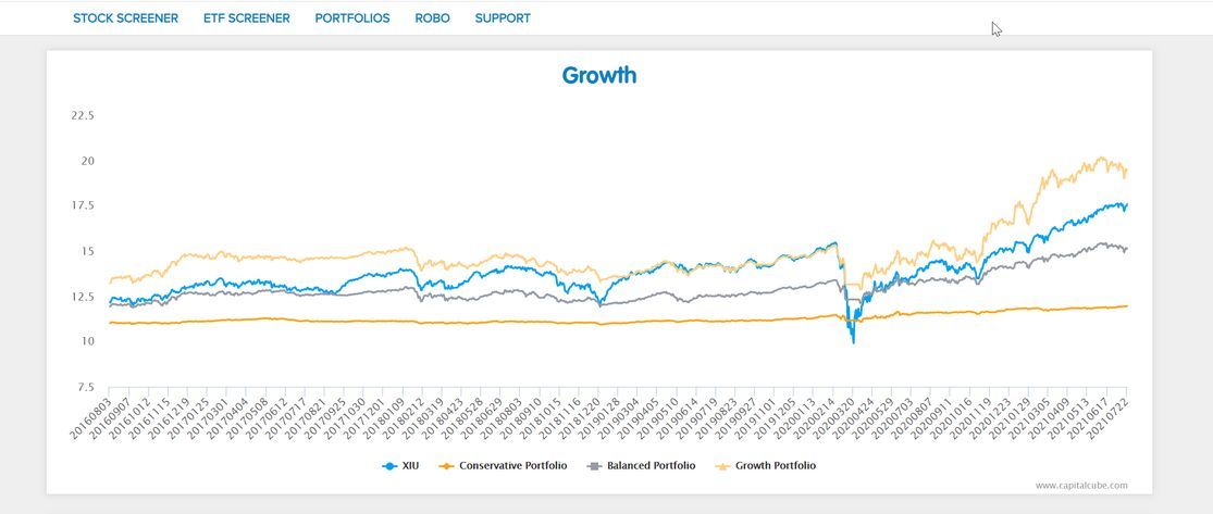 Here the ROBO Portfolio has plotted the returns on a graph to depict the returns for four different types of portfolios.