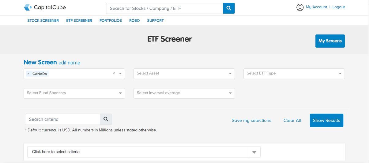 ETF Screener is a unique feature that not many platforms provide. CapitalCube provides similar screening tools for ETFs as well. This is exclusively applicable for North American countries or U.S and CANADA to be specific.