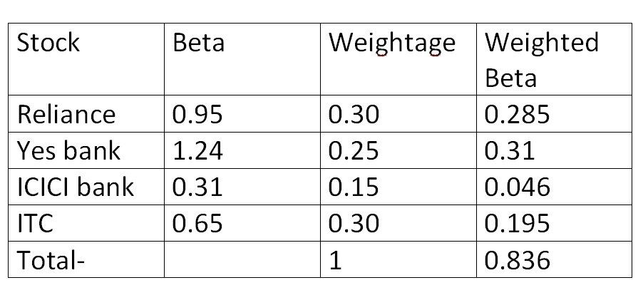 To calculate the overall beta of a portfolio one has to find out the Beta values of Individual stocks according to the weightage of individual stocks.