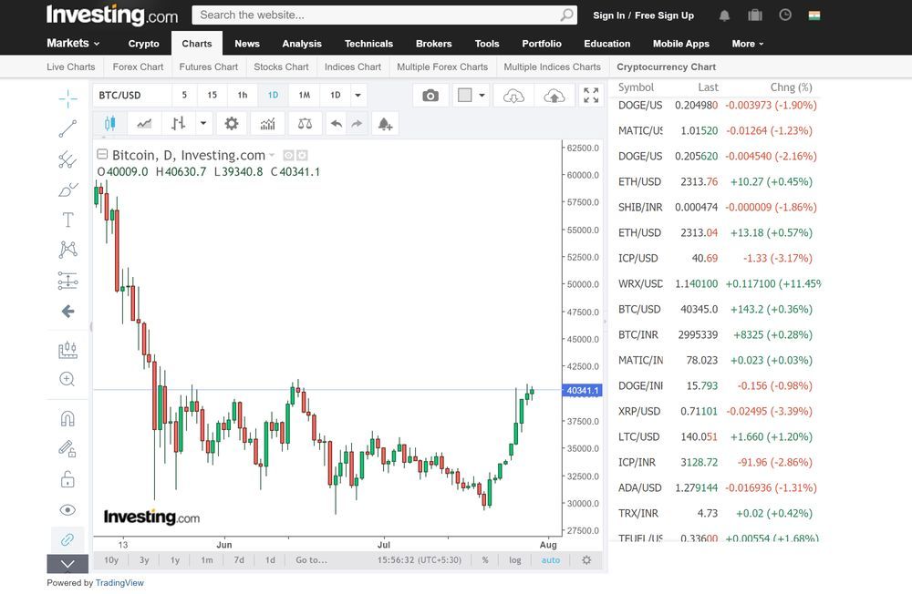 Let’s hop on to one of the most used features on Investing.com which is ‘Charts’. Charts have become an imminent part of a trader’s and investor’s life who wants to analyze stocks, ETFs, Currencies, etc. Investing. com provides live charts for you of every possible asset. The charts are powered by “Trading View” hence the accuracy would be spot on.