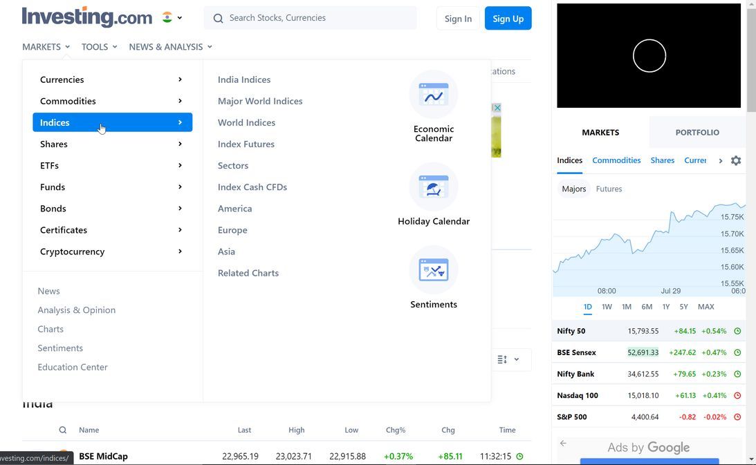 As Investing.com is a global platform, you can get access to live markets of any geography from here. You can select your preferred country from the top right corner in order to begin your analysis.