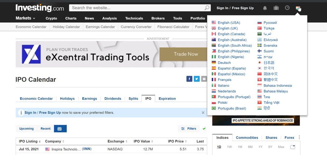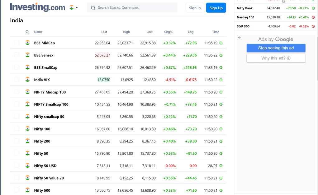 Looking at the exceptional features that the platform provides, you much be wondering what’s the cost? The answer to this question is, “It’s absolutely Free”. For the Indian version, Investing.com is completely free to use. The only paid feature in the platform is provided to remove the ads that appear.
