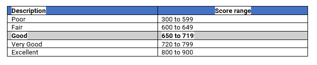 We have illustrated the range of credit scores below from poor to excellent:
