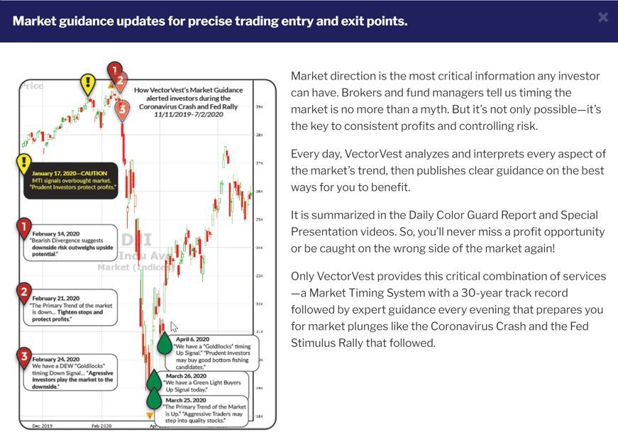 Now that you have seen the features of the platform, let’s look at the products that Vector vest provides that can utilize the following features.