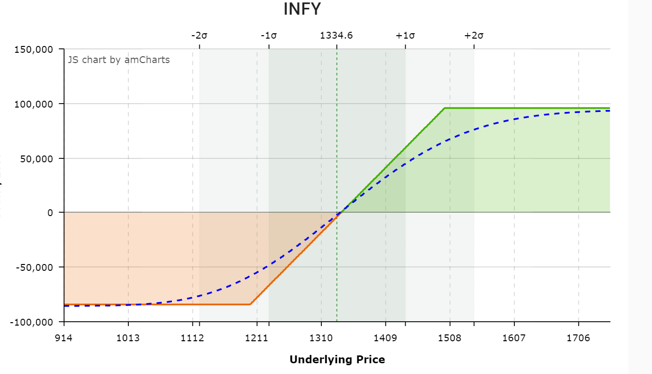 This is the payoff graph after implementing this Collar strategy on Infosys.