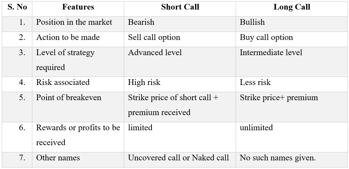 Short call and long call are the call option strategies and individuals buy or sell the shares. There are various differences between them and are important to be known. The elaborated version is described below.