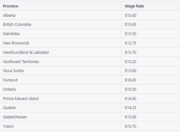 It’s important to note that some provinces also have different minimum wage rates for different types of employees.