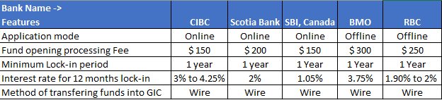 We have compared the features of some famous banks in Canada that offer GIC for international students:
